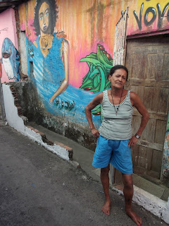 Quero contar uma experiência de vida,quando cheguei do rio depois de dois meses de passeio, logo no começo do ano juro que fiquei perdido, um amigo meu Tiko Sant'Ana, me disse que ia rolar o evento no quilombo dele no dia 24 de janeiro um dia depois do meu aniversario, e que íamos pintar la na comunidade do solar do unhão um painel de capoeira, la pra o dia 15 fomos ver a locação, eu Bigod e prisk, ficamos encantado com as possibilidades um local cheio de muros com arcos que nos remeteram a mini capelas sistinas, jogamos capoeira ali naquele lugar e senti magia, na hora pensamos em um projeto antigo o de criar um museu de graffiti, começamos e em vez de ir no dia do evento fomos entrando e entrado cada vez mais, pintando o possível, hoje em meado de abril, nos podemos dizer felizes da vida dizer que foram muitos por do sol, conhecemos a matéria mais importante da nossa jornada que foram as pessoas do local, entre elas vovó que com seus jargões nos encanta e muitas vezes mata a nossa fome, afemariaaaaa... nos conseguimos leva uma banda de outra comunidade pobre pra provar que os quilombos estão unidos pra tocar nos arcos, começamos a campanha de cinema conseguimos comprar a caixa ganhamos a doação de um projetor, envolvendo assim muita gente distante nesse projeto loco, as meninas fotografas usaram la como locação para uma marca de um shopping de salvador, queimamos um judas, fomos descobertos por uma cineasta carioca que gravou com a gente quando pintamos a fonte secular que tem na comunidade, nos já compramos fiado no bar de seu Idemario, uma menina sempre que vem de feira de Santana faz um dia de praia e cultura e alegria, afemaria, queimamos um judas, fizemos macarrão caseiro, e pretendemos muito mais, junto com as crianças já limpamos todo o lixo da praia um dia, convidamos vários artistas, para pintar , e eles foram, e levaram o material, pagamos 3 alugueis, gastamos uma quantidade de tinta enorme, comemos sushi e moquecas de variados peixes, nos também ganhamos de um graveto aqui uma geladeira, de outro ali um fogão que só queima de uma boca e solta gaz, mais volto a dizer que a matéria viva foi mais forte, todas as crianças que tem contato diário com arte simplesmente por estarmos la, e nos vendo o mar, prisk que esta começando a carreira de cozinheiro, o fato de estarmos a mais de 3 meses lá e não ver nada daquilo que a televisão fala sobre essa comunidade, nos tivemos pouco apoio de pessoas comuns, não foi fácil nem um pouco fácil devo dizer a verdade, mas contamos com ajudas e suprimentos no nosso posto avançado contra babilônia, acabamos de ganhar um fogão de outro desses gravetos enquanto escrevo essa nota.